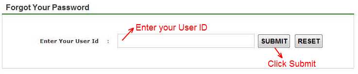 When you click on Forgot Password?? Click here to retrieve your Password. you will be redirected to the page where you have to enter your User Id and then submit the form.